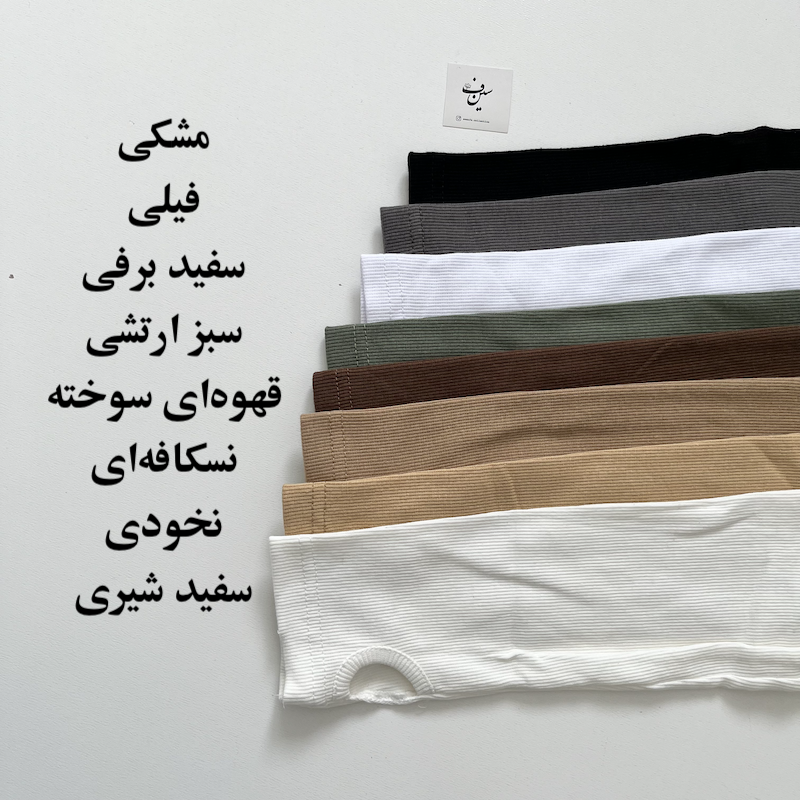رنگبندی: مشکی. سفیدشیری. نخودی. نسکافه ای. قهوه ای. سفیدبرفی. سبزارتشی. فیلی