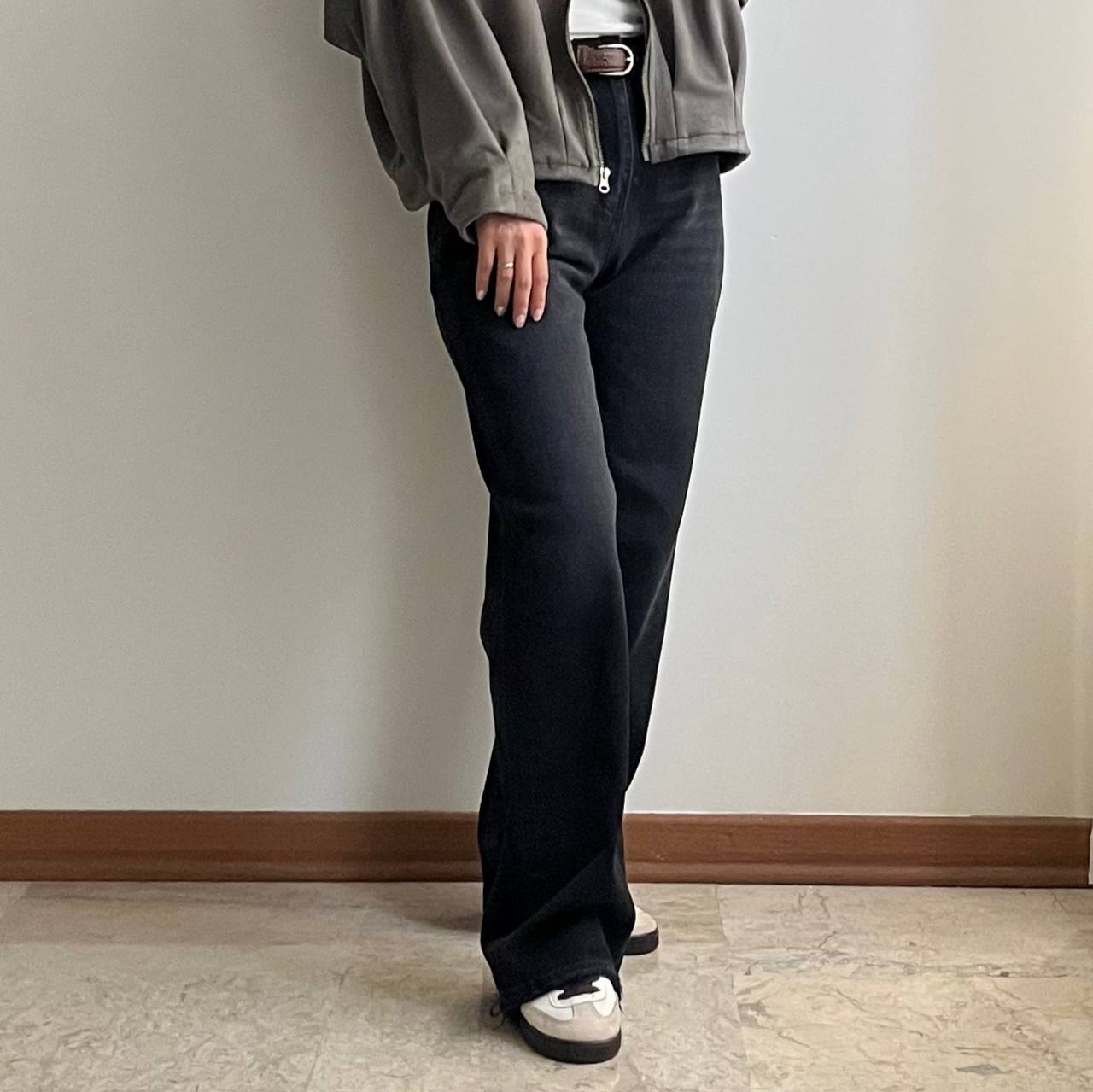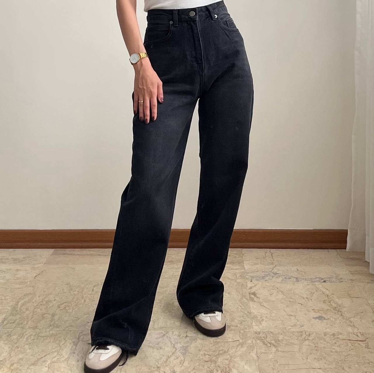 شلوار جین نیم بگ ذغالی پاریس
