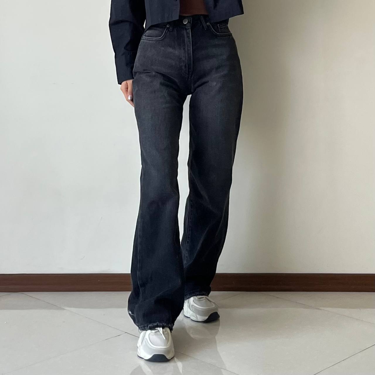 شلوار جین نیم بگ ذغالی کمند