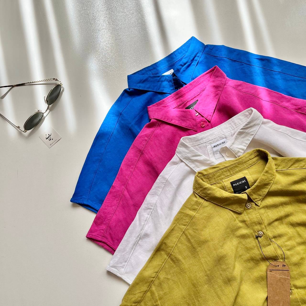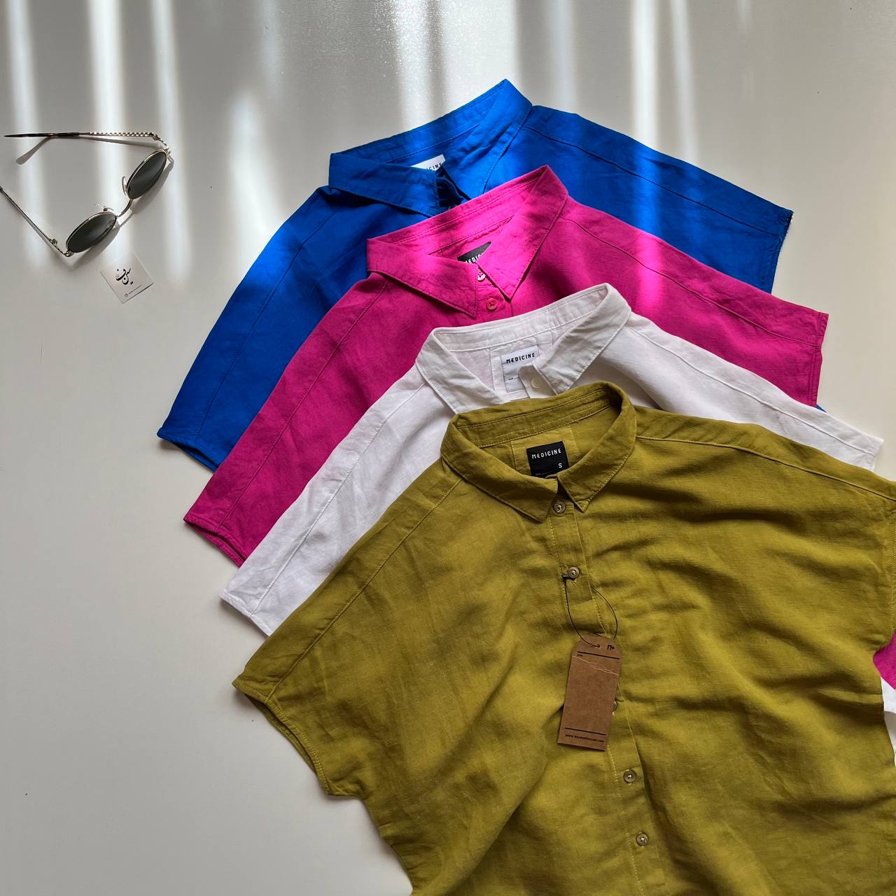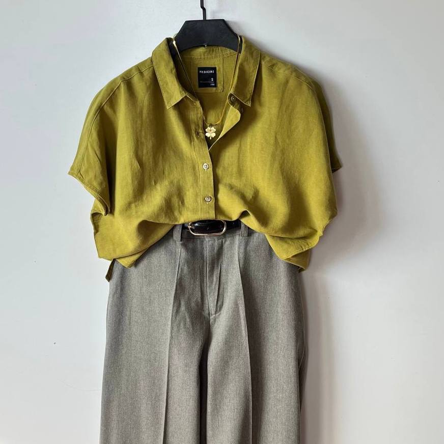 شومیز لینن رنگی آستین کوتاه راشل