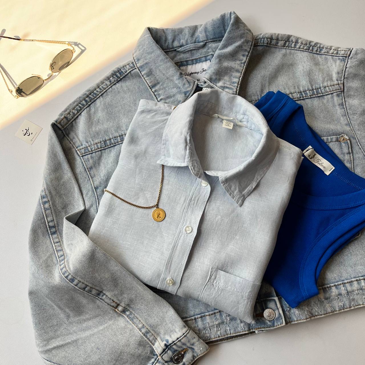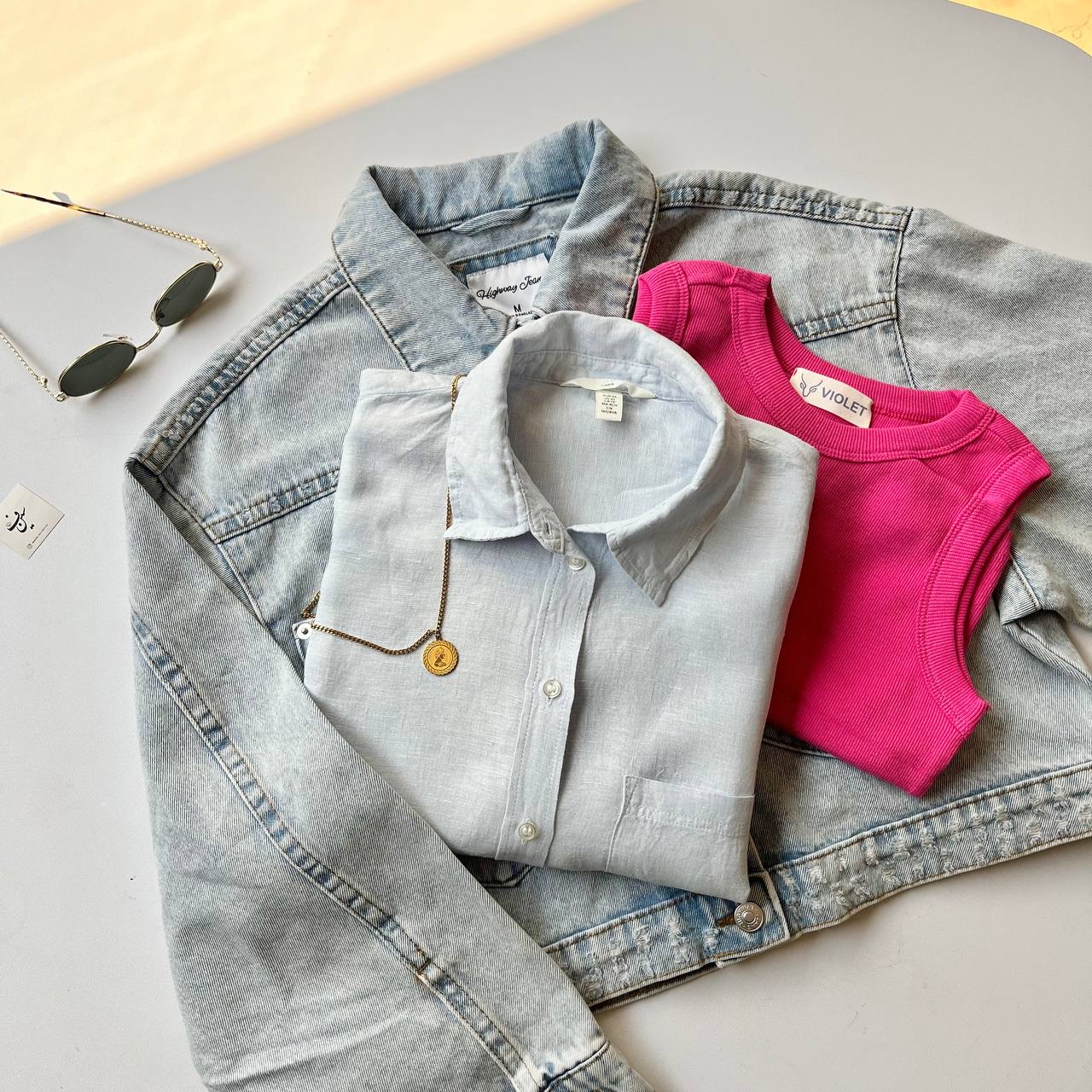 شومیز لینن وارداتی آبی