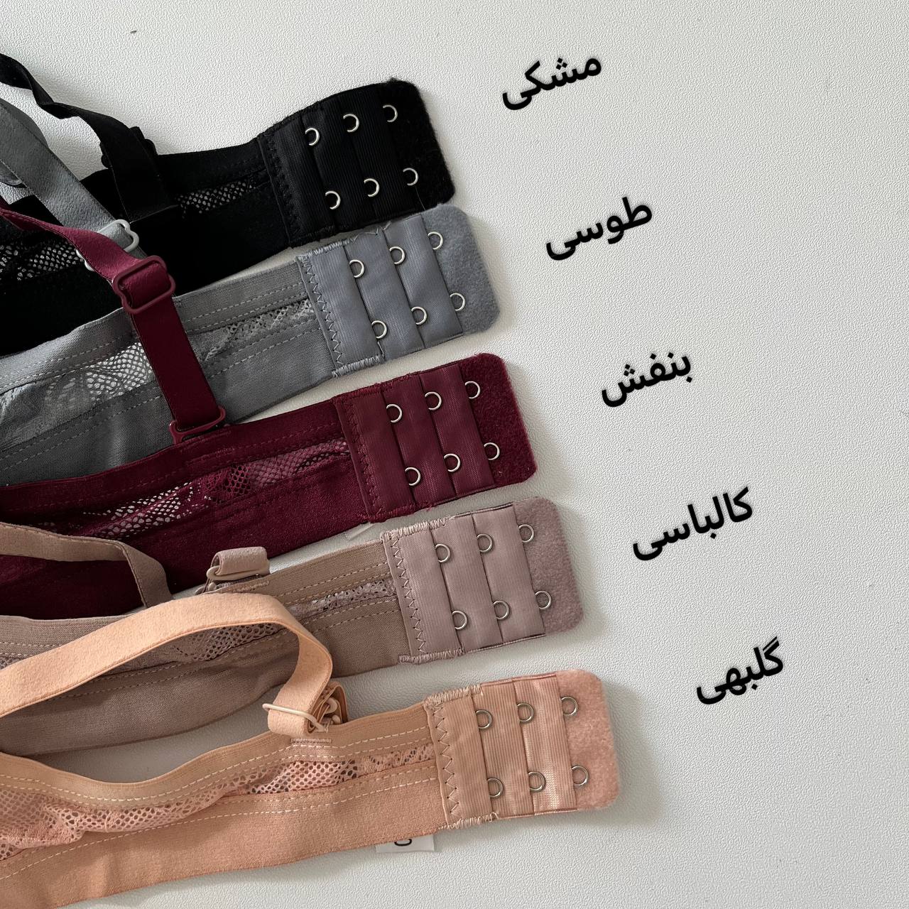 بنفش, طوسی, کالباسی, گلبهی, مشکی